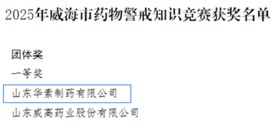 近日,由威海市市場(chǎng)監督管理局、威海市總工會(huì )、威海市人力資源和社會(huì )保障局聯(lián)合舉辦的2025年威海市藥物警戒知識競賽活動(dòng)圓滿(mǎn)落幕。在這場(chǎng)激烈的角逐中,中關(guān)村科技旗下山東華素制藥有限公司(以下簡(jiǎn)稱(chēng) “山東華素制藥”)的3名參賽選手憑借深厚的專(zhuān)業(yè)功底和出色表現,一路過(guò)關(guān)斬將,最終榮獲團體一等獎,個(gè)人一等獎2名、二等獎1名的優(yōu)異成績(jì)。